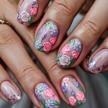 10. 3D Floral Accents: For nail artists looking to add texture, 3D floral embellishments can be an exciting option. Using acrylic or gel, create raised flowers on the nails, adding dimension and a unique visual appeal.