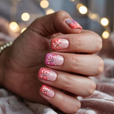 6. Ombre Floral Fade: Incorporate the ombre technique by blending two or more colors that fade into one another, finished with delicate floral details on top. This design offers a smooth transition and an artistic flair.